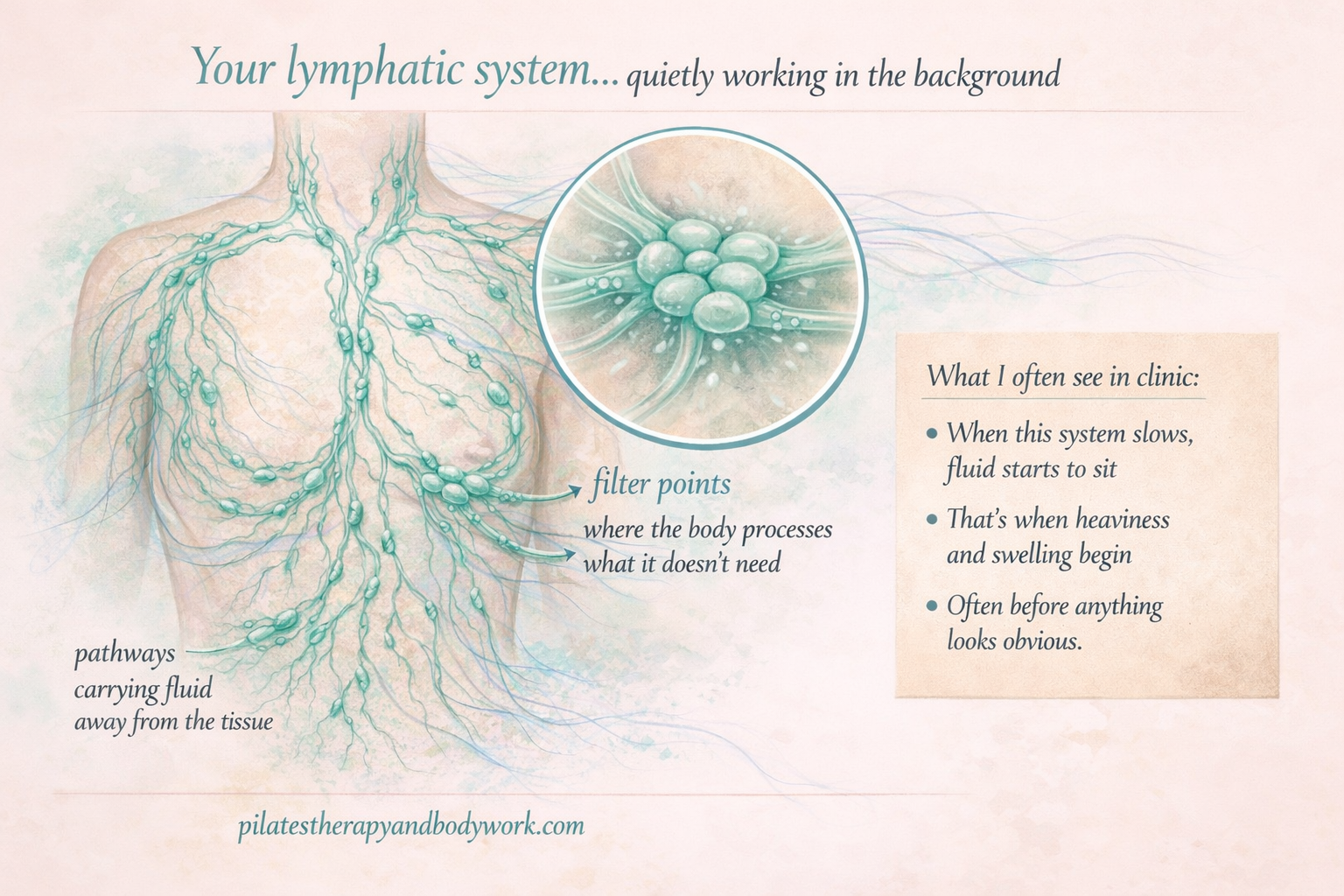 Your lymphatic system isn’t a pipe that gets “blocked” like a drain.