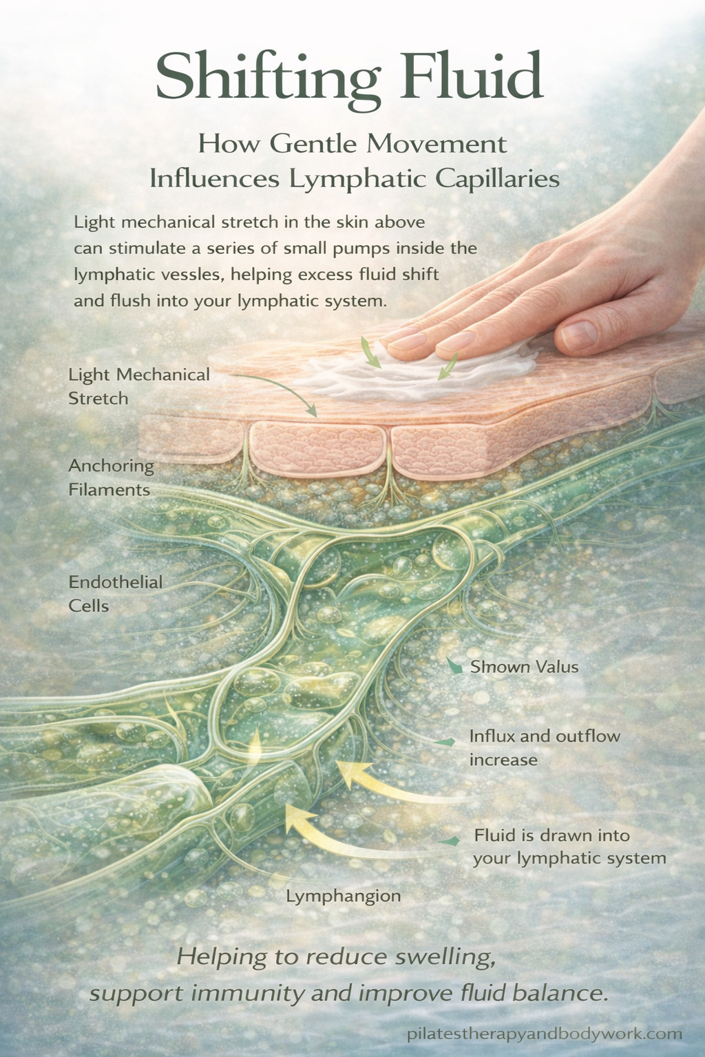 Research shows that lymphatic capillaries respond to subtle changes in pressure and stretch, helping them open and absorb fluid more effectively (Schmid-Schönbein, 1990s onwards).